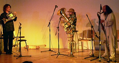1985 to 1989: member of Three O, with Sergey Letov (saxes, flutes) and Arkady Kirichenko (tuba, vocal.) October, 2005: Three O celebrates its 20th anniversary (see picture.)