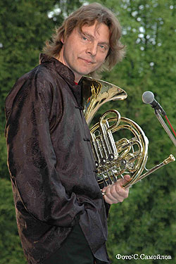 1984 to 1986: first serious experience in jazz, a French Horn - acoustic bass duo (with bassist Mikhail Karetnikov.)