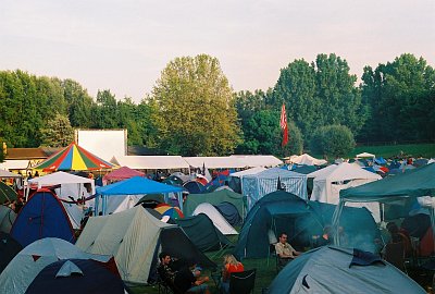 Потенциальные, потому что фестиваль в Мерсе - не просто музыкальный фестиваль, это праздник и для тех, кто просто любит посидеть ночью на свежем воздухе у костра, рядом с ящиком пива, побить в барабан и погорланить. Народные массы, собирающиеся в парке, очень цветисты. Это и хрестоматийные панки с "ирокезами" на головах, и семейные пары с детьми, и долговязые немецкие подростки, и широкоплечие африканцы, и миниатюрные азиаты. В толпе можно встретить и продюсеров разных других фестивалей (эти, конечно, живут в гостинице), и журналистов, и музыкантов. Так, в частности, встречен был московский валторнист Аркадий Шилклопер, живущий теперь в Германии и прибывший посмотреть на концерт Билла Бруфорда (Bill Bruford), поклонником которого он является со времен группы "Yes".