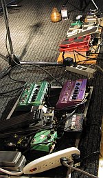 Взору рассевшейся под фикусами публики в "Оазисе" в хорошо организованном беспорядке предстали чехлы и личные вещи музыкантов, а также готовые к музицированию инструменты.