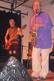 Однако последовавший несколько дней спустя фестиваль японского авангарда (20-22 сентября) вернул все на круги своя. Один из концертов, прошедших в рамках фестиваля, не без удовольствия посетила ваша покорная слуга - Москву почтил своим визитом давно снискавший заслуженное уважение российских слушателей японский саксофонист Кадзутоки Умэдзу со своим коллективом KIKI Band в следующем составе: Кадзутоки Умэдзу (альт-саксофон), Кидо Нацуки (гитара), Хаякава Такихару (бас-гитара) и Ниида Кодзо (ударные).