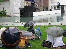она с честью выдержала, пересидев дождь под зонтиками.
