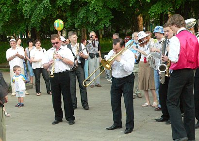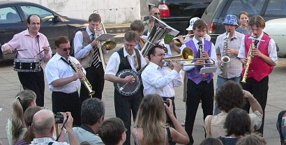 выступлением диксиленда на площадке перед Домом Учёных. |