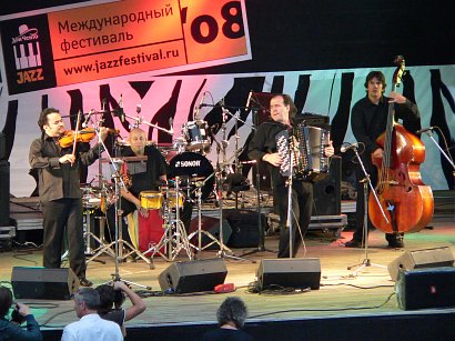 В составе ничего лишнего: аккордеон (сам лидер), скрипка (венесулец Алексис Карденас), перкуссия (ещё один представитель Венесуэлы — Рафаэль Меихиас) и контрабас (бельгиец Филипп Эртс). Программа чётко сбалансирована как динамически, так и тембрально: кроме чисто ансамблевых эпизодов, в программе есть интерлюдия, в ходе которой Гальяно сначала играет дуэтом с контрабасистом, причём сам играет не на аккордеоне, а на аккордине (подобие духовой мелодики, только не с «рояльной», а с кнопочной клавиатурой); затем исполняет три пьесы соло — том числе И.С.Баха, из которого без остановки вылетает в «Libertango» Астора Пьяццолы в очень быстром темпе; и, наконец, уходит за кулисы отдохнуть, пока на сцене радует публику дуэт скрипача и перкуссиониста. Алексис Карденас — скрипач очень драйвовый. Нет у него тягучести и этакой поверхностности, вроде той, что бывает у классических скрипачей, решивших «поиграть что-нибудь джазовое». Перкуссионист Рафаэль Меихиас — отдельная тема: два раза в течение концерта он исполнял виртуозные соло на... маракасах, и это не было ни однообразно, ни скучно!