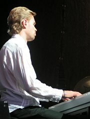 Впрочем, по порядку. Для нас фестиваль начался с его второго вечера, когда играла немецкая фьюжн-група Mo'blow. Берлинский коллектив во главе с саксофонистом Феликсом Ф. Фальком (сопрано, альт и баритон) играет весёлую, не слишком заумную, но и отнюдь не глупую музыку. Можно, наверное, порассуждать о не слишком ярком тематизме их композиций, но это общая беда практически всех, кто играет джаз-рок и фьюжн в наше время, через тридцать лет после того, как эта музыка была на переднем краю развития массовых музыкальных жанров. Группа порадовала сильными соло почти всех участников (выделялся приглашённый музыкант, единственный не немец в ансамбле — ливерпульский гитарист Тони Ормешер), и единственное, чего (помимо более содержательного музыкального материала) хотелось бы ей пожелать — это чтобы барабанщик наконец уже начал слушать при игре не только себя, но и партнёров.