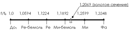 тетрахорде получаем точку, делящую весь интервал в пропорции «золотого